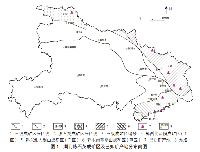 【关键词】脉石英;成矿区带;成矿规律;湖北