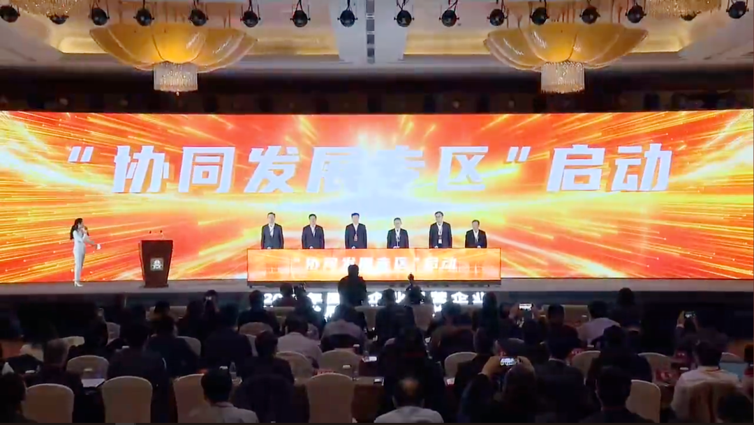张晓平董事长(右一)作为唯一的民营企业代表,参加“协同发展专区”启动仪式。