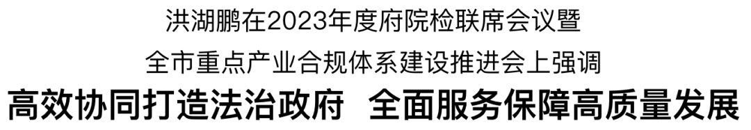 今天下午,2023年度府院检联席会议暨全市重点产业合规体系建设推进会召开。市委副书记、市长洪湖鹏讲话。市领导张宏亮、郑新友,省委主题教育第五巡回督导组有关同志等参加。