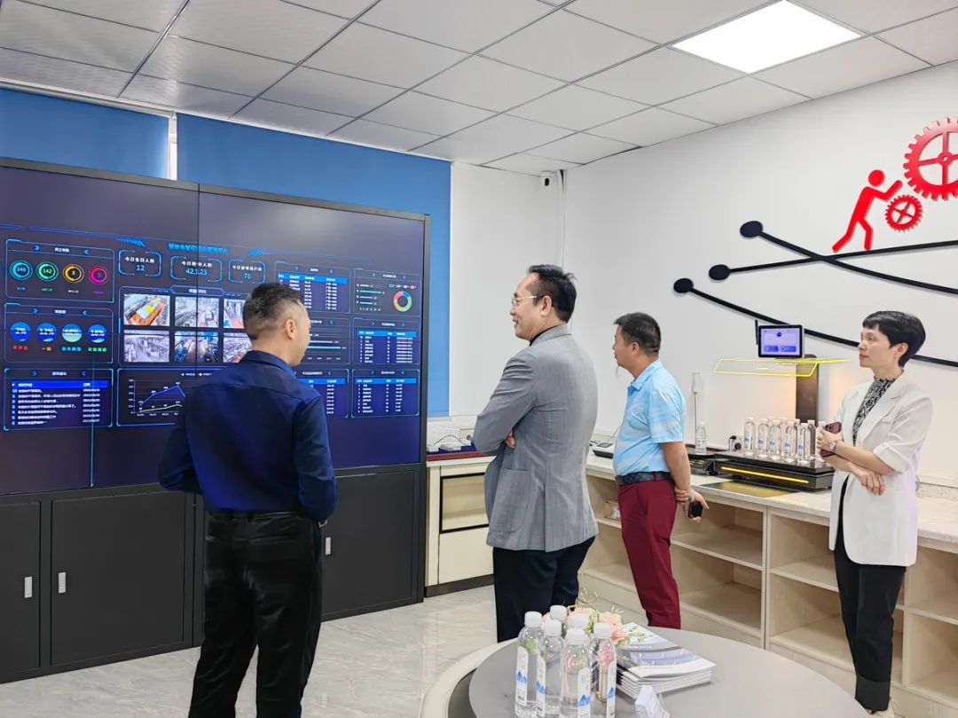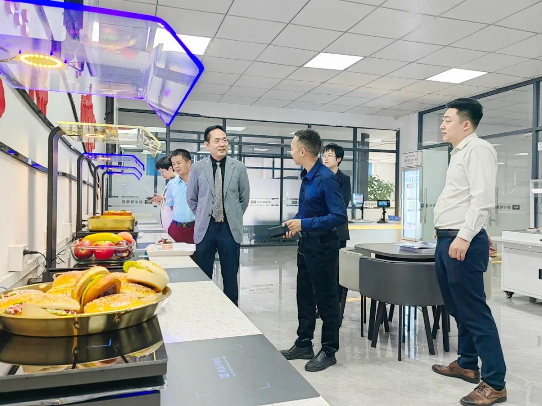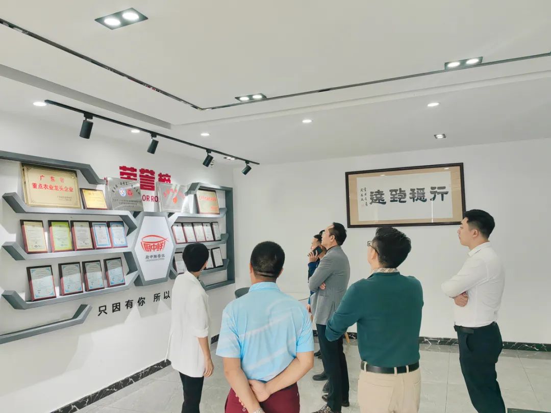 在厨中鲜餐饮集团有限公司,走访调研组一行实地参观了企业的文化墙和智慧餐厅,详细了解企业的生产经营情况,并就如何进一步做强做大企业等展开深入的交流。
