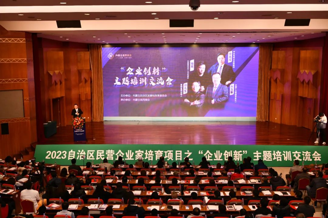11月12日,由内蒙古自治区发展和改革委员会主办、内蒙古信用商会商会承办的2023年自治区民营企业家培育项目“企业创新”主题培训交流会在呼和浩特举办。本次培训的讲师普遍务实、影响力大,企业家报名学习热情十分高涨,报名人数高达1000人,企业家学习人数远远超出原计划200人的培训目标,培训方两次调整会议场地,500余名企业家代表参加了培训。北京内蒙古企业商会会长、慧聪集团名誉董事长、慧聪书院创始人郭凡生先生应邀出席会议并做主题演讲。