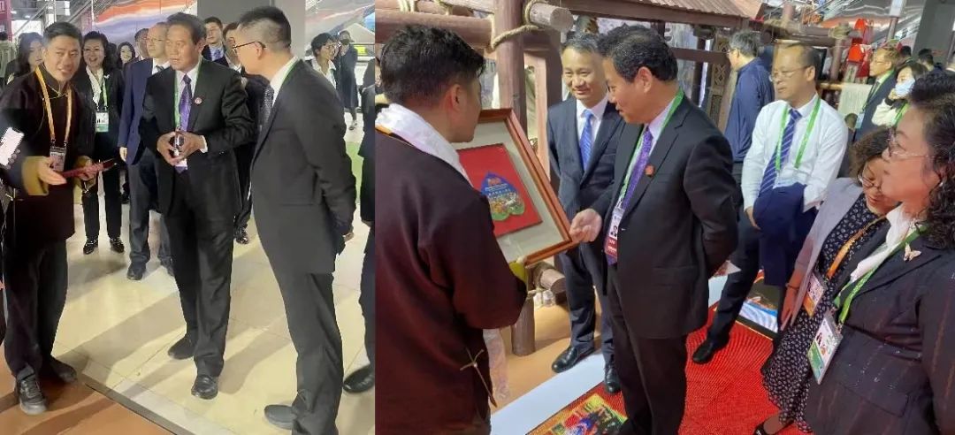 青海省委常委、省人民政府副省长才让太、青海省委常委、海东市委书记乌拉孜别克·热苏力汗、青海省商务厅厅长熊义志,青海省文化厅副厅长一级巡视员吕霞、非遗处处长朱桂英等领导莅临青海馆参观化隆唐卡。