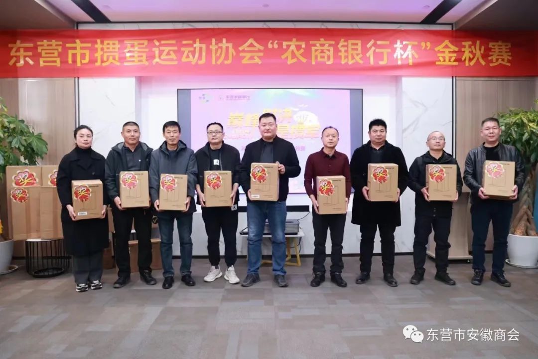 “传播掼蛋趣味文化,共享百姓快乐生活”,在狂欢双11这个隆重的日子,东营市掼蛋运动协会在市农商银行总部隆重举办“农商银行杯”金秋赛,诚邀32支队伍共64名选手参赛,东营市安徽商会共派出由谢敏会长带队,队员卜兴锁、马超、吴的平、李孔宝和刘义组成的三支代表队参赛 。