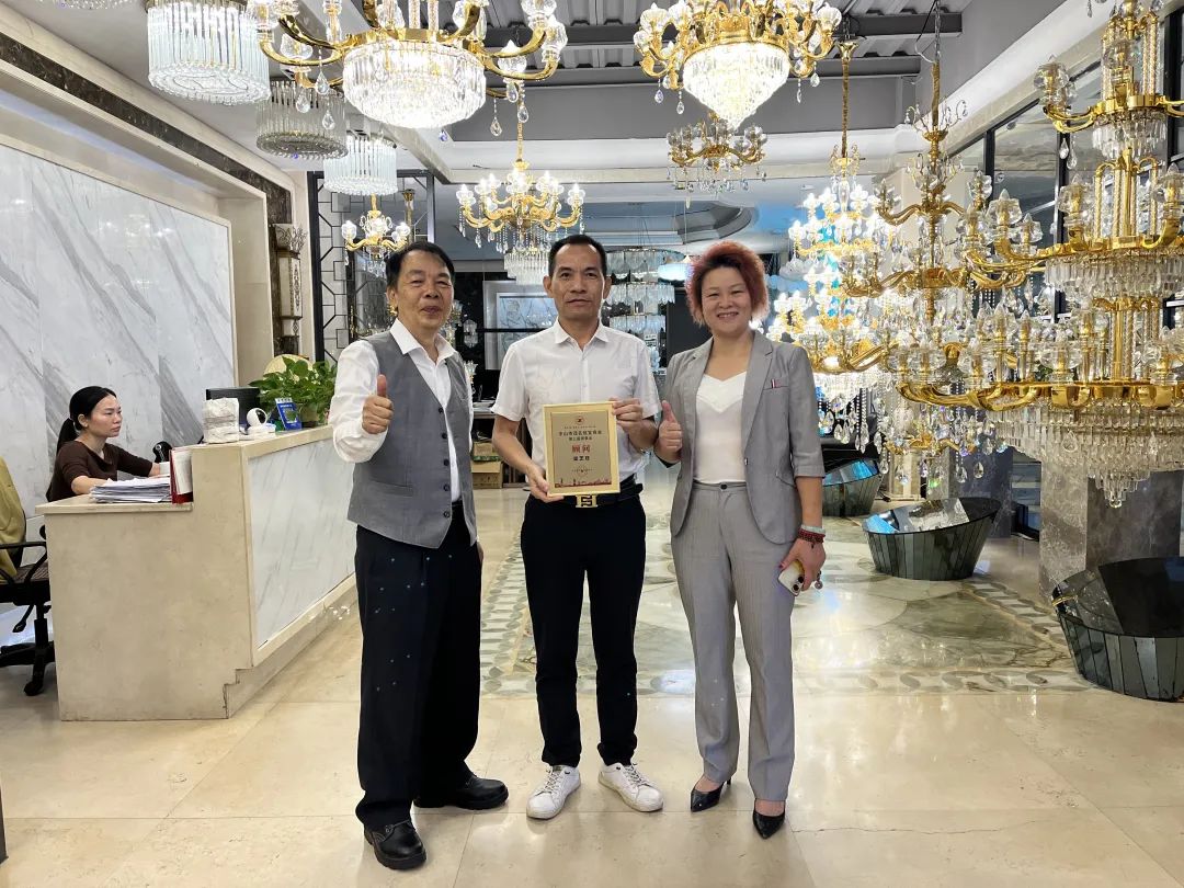 第一站,小榄“开阳灯饰”,受到顾问梁芝旺、韦桥英夫妇热情欢迎,大家就乡事、会务、目前经济及相关业务进行交流。梁总对商会新一届的办会新理念表示赞赏和支持。【梁芝旺13822702208,经营精美灯饰二十多年,在业界名闻遐迩,如会员乡亲有业务合作需要,请直接联系】