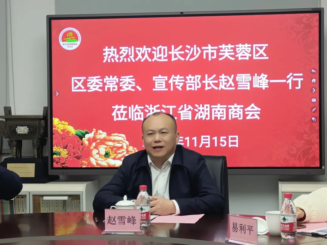 长沙市芙蓉区区委常委、宣传部部长赵雪峰对在浙拼搏的湘商给予了高度赞扬,来杭后不仅受到了老乡和商会的热情接待,也同样取得了真经。作为营商环境全国排名前十、已连续获得第十六届幸福城市称号的长沙市,欢迎在浙的湘商常回家看看,多帮家乡推广宣传。
