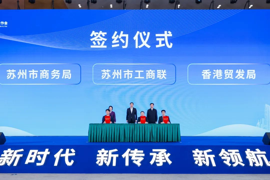 苏州市工商联、苏州市商务局和香港贸发局签订战略合作框架协议,根据战略合作框架协议内容,各方将积极引导服务民营企业开展与香港苏州有关的经贸活动、民间投资合作,帮助两地企业了解市场情况、投资环境,支持、引导两地企业积极参与长三角一体化发展、粤港澳大湾区建设,不断加强苏州香港在贸易投资、科技创新、产业融合、人文交流等领域的合作,更好地促进和服务苏州、香港高质量发展。