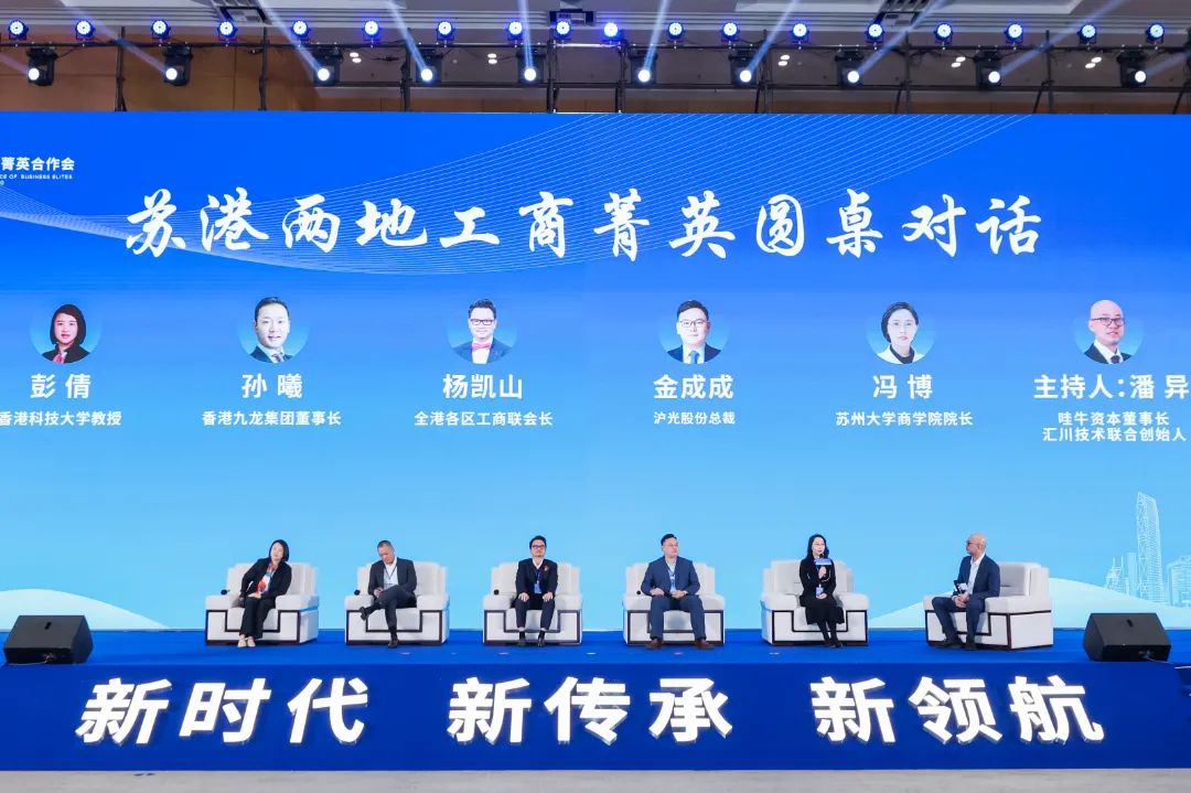 全港各区工商联会长杨凯山、香港九龙集团董事长孙曦、香港科技大学教授彭倩、江苏省新时代民营经济研究院院长冯博、昆山沪光汽车电器股份有限公司总裁金成成、哇牛资本董事长潘异围绕苏港企业合作、企业传承进行了圆桌对话,两地工商菁英、专家学者共话苏港两地合作、青年企业家培养。