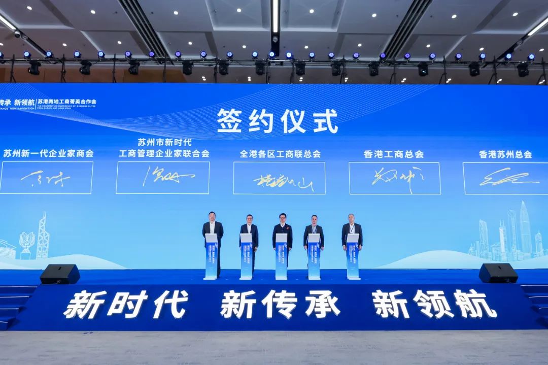 苏州市新时代工商管理企业家联合会、苏州新一代企业家商会和全港各区工商联总会、香港工商总会、香港苏州总会签订战略合作框架协议,各工商社团将在人员互访、政策信息互通、促进会员企业合作、服务企业落户苏港两地等方面展开合作,为促进两地经贸往来贡献积极民间力量。