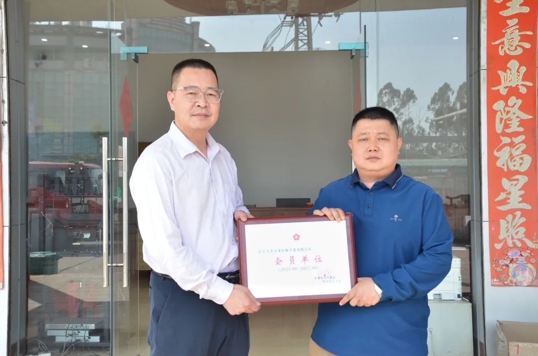 走访期间,商会副会长张木权向会员曾育平颁发会员牌匾。