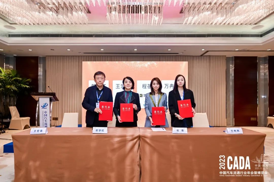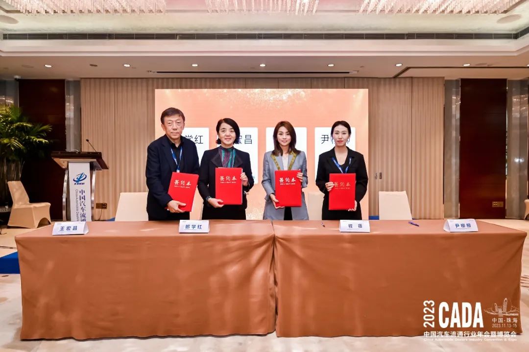 会上,中国汽车流通协会有形市场分会秘书长王宏昌先生、中国汽车流通协会产业协调发展工作委员会秘书长郎学红女士、功夫车服创始人程蓓女士、山东省二手车流通协会秘书长万冉冉女士、河南省二手车流通协会 尹柳柳女士、浙江元通二手车交易市场负责人 周加生先生、捷通达集团CIO兼创新中心总经理 韩笑先生一起完成战略合作签约仪式,开启了二手车新用户时代。