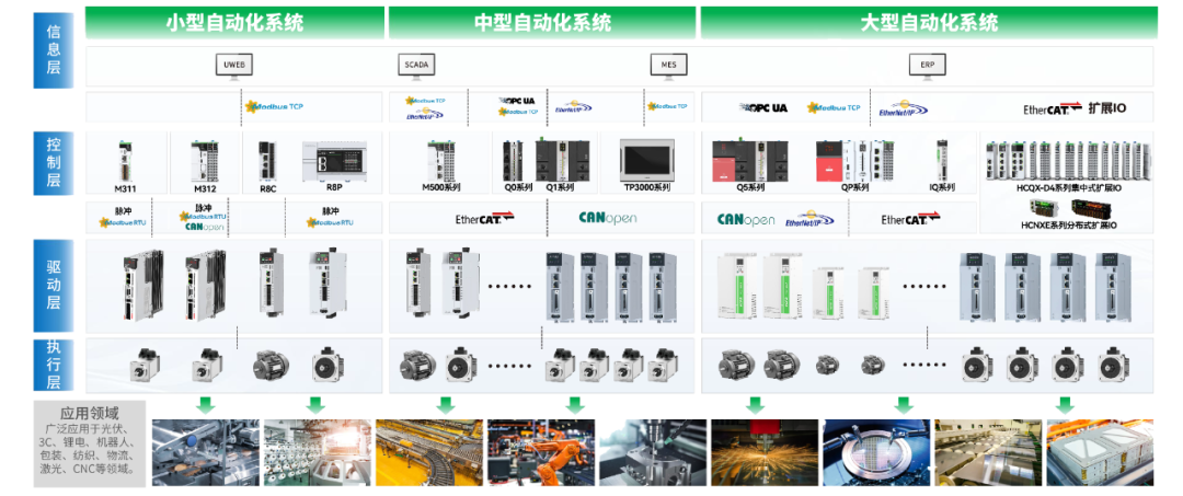适用于锂电、光伏、激光、木工、物流、机械手、机械臂等行业,以强大的硬件性能和高功率密度设计适用于多种应用场景。
