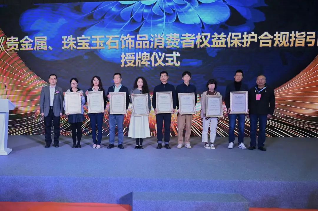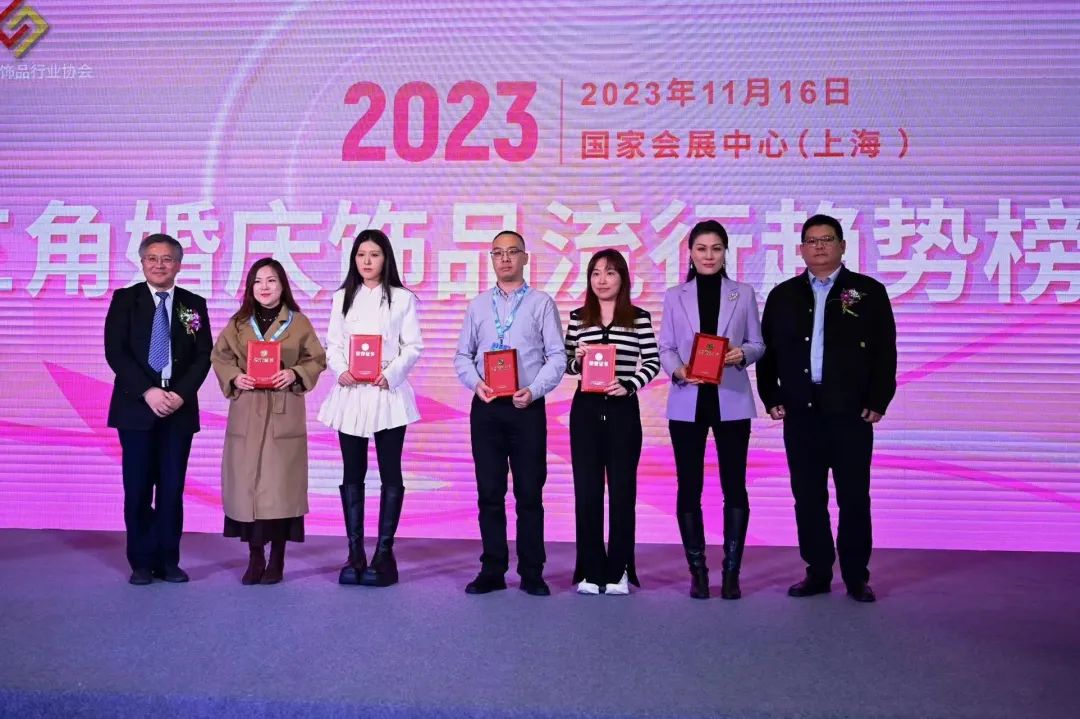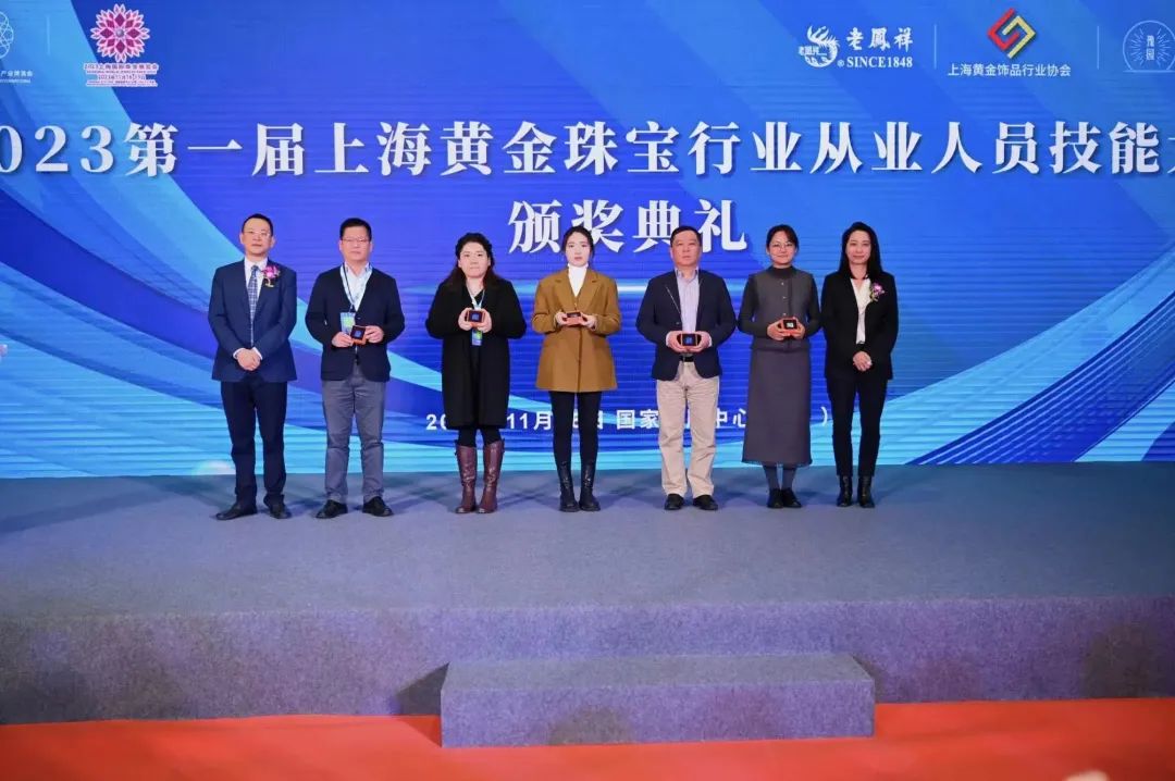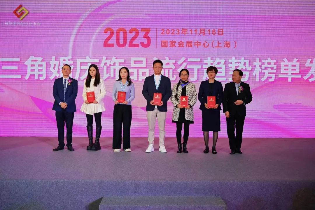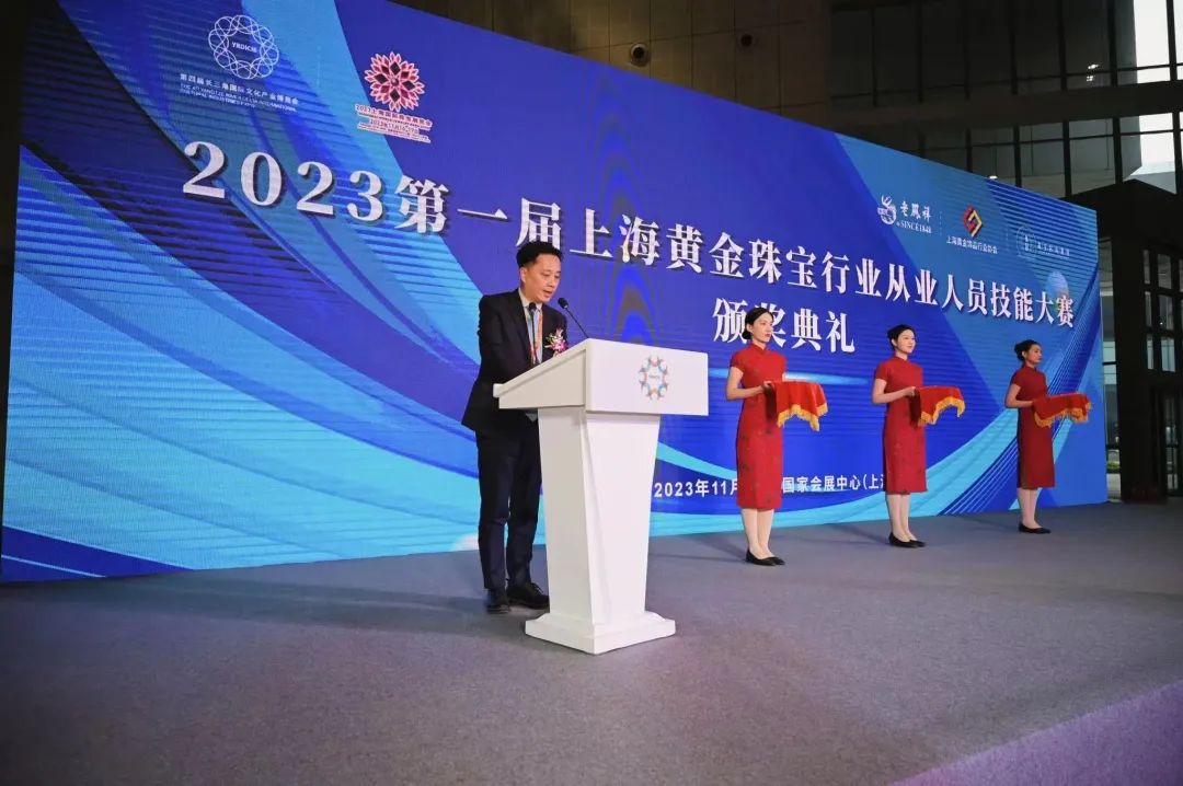 今天上午,2023长三角婚庆饰品流行趋势榜单发布活动、2023 第一届上海黄金珠宝行业从业人员技能大赛颁奖典礼、《贵金属、珠宝玉石饰品消费者权益保护合规指引》第二批承诺执行单位授牌仪式,在展览会现场隆重举办。
