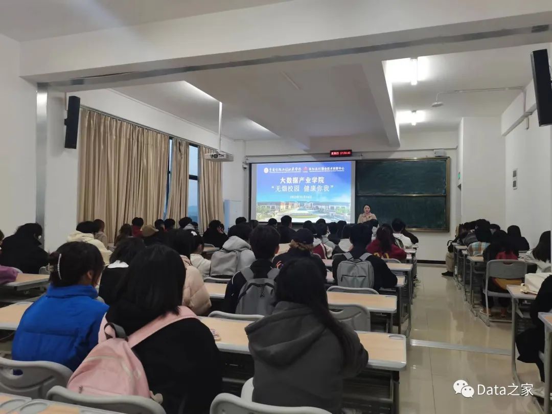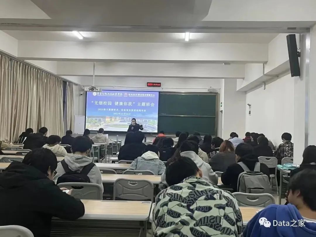 11月16日,大数据产业学院举办了一场“无烟校园 健康你我”主题教育活动,旨在倡导健康的生活方式并提高学生对吸烟危害的认识,从而达到杜绝不文明抽烟的现象。