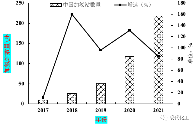 图3 2017-2021年中国加氢站数量