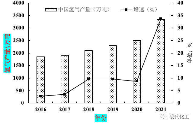 图1 2016-2021年中国氢气产量