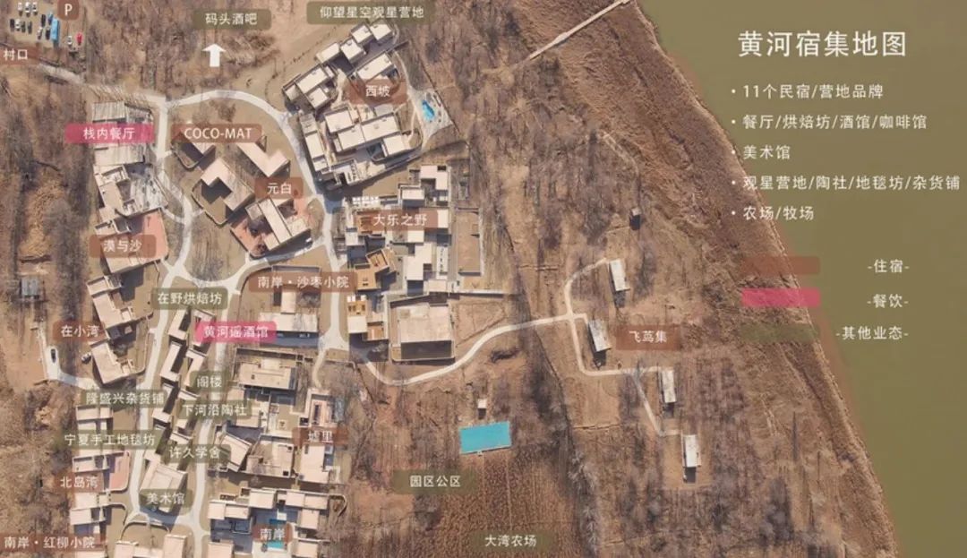 如今的“黄河宿集”,不仅引入了在小湾、元白、迹外营地等住宿品牌,还有着漠与沙SPA、读库书店、食野山桌餐厅等业态,不断丰富着各类业态和新的产品玩法。作为西北旅游目的地最具风格的一张名片,“黄河宿集”为宁夏片区的旅游创造了新的可能,也改变了西北地区缺少高端文旅产品以及冬季直接歇业的旅游现状。