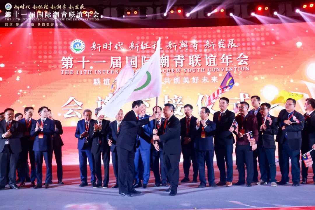 当天下午,年会举行了全球潮青对话论坛、国际侨青发展论坛、环保与社会责任论坛等多个平行论坛,共同商讨构建全球潮青、侨青大团结、大合作网络,碰撞出璀璨的思想火花。国际潮青联合会会长、深圳市潮青商会会长李奕标在闭幕式上正式宣布第十二届国际潮青联谊年会将于2025年由马来西亚潮州公会联合会青年团主办,并举行会旗交接仪式!