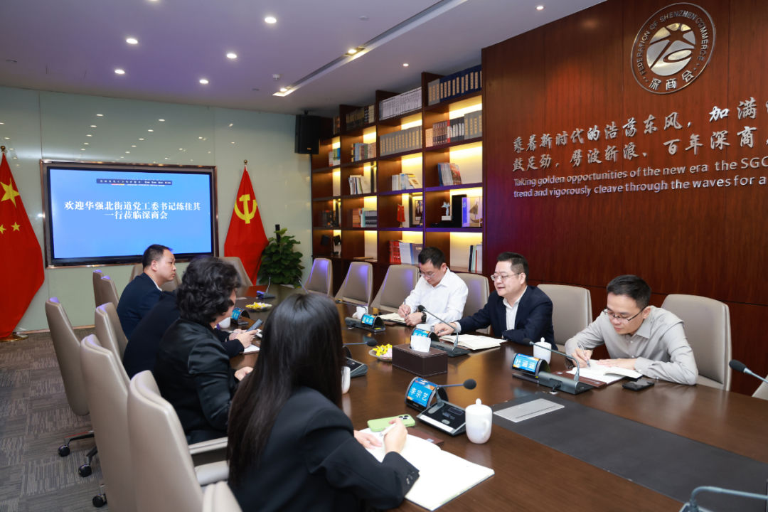 11月14日,华强北街道党工委书记练佳其、华强北街道党工委委员办事处副主任杜涵涵、华强北街道办事处企业服务中心主任罗栋成莅临深商会调研,与深商会常务会长林慧进行座谈交流。