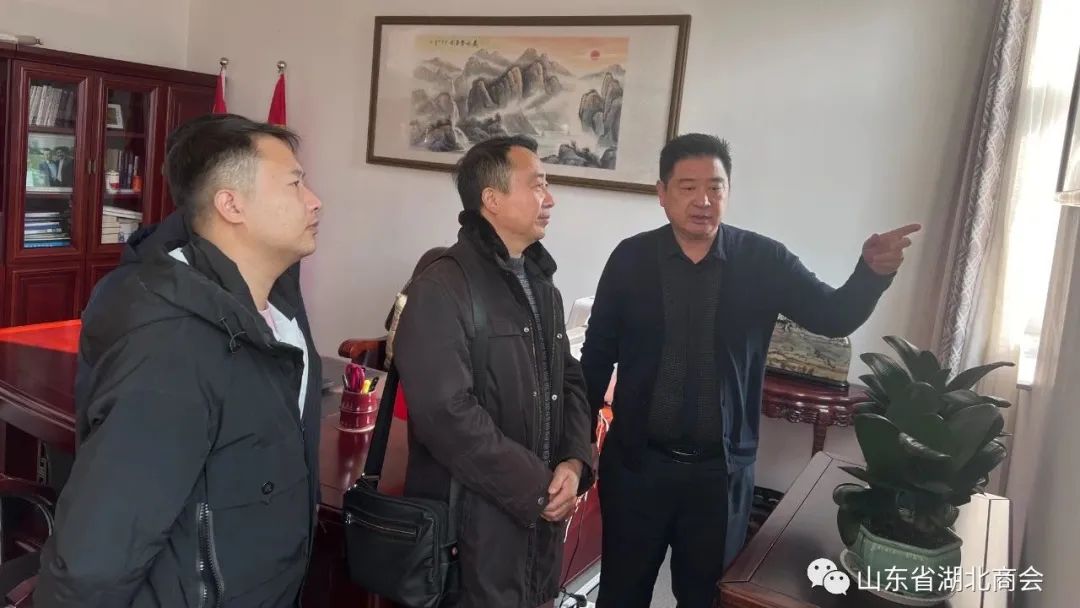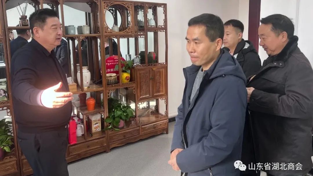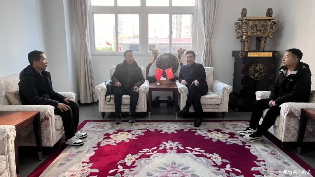 2023年11月14日上午,湖北省江陵县招商服务中心驻济南市招商组刘贤刚副主任一行到商会参观交流。王传高会长、秘书王坤宁、王仔文热情接待来访客人,双方就如何助力湖北省江陵县开展招商引资工作进行了座谈交流。