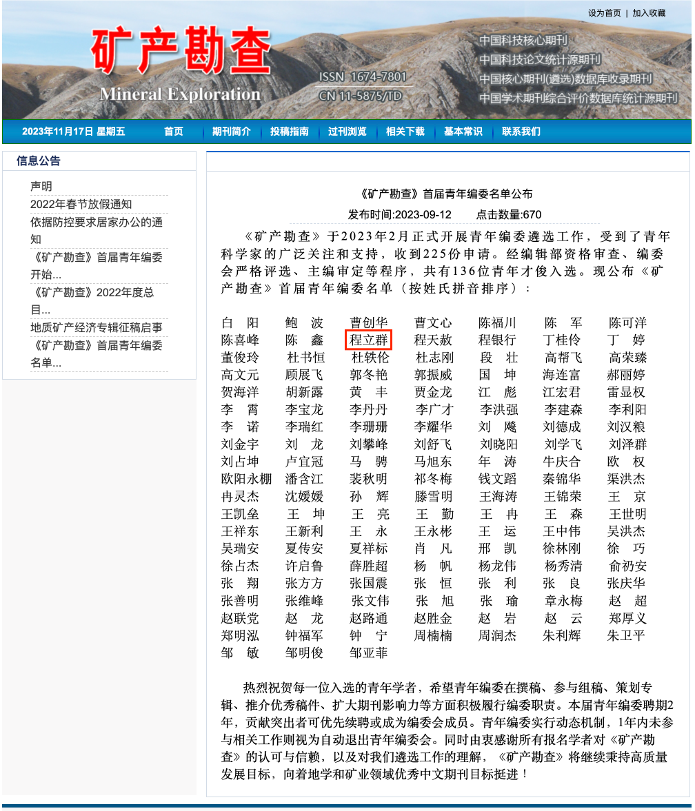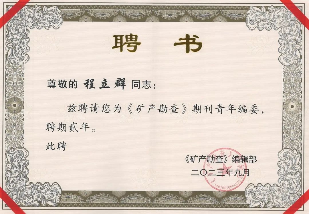 入选《矿产勘查》期刊首届青年编委