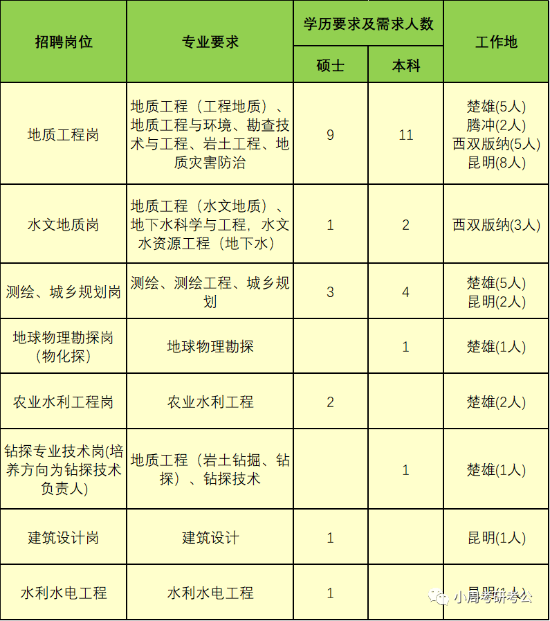 公司现有在职职工近600人,国家级专家1人,省级专家90人,州(市)级专家40余人;拥有正高级职称11人,高级职称136人,中级职称135人;拥有注册岩土工程师、建造师、咨询师、测绘师等各类注册师100余人。技术和施工力量雄厚,地质勘查设备精良齐全,是能征善战和匠心富聚的地质测绘类综合技术服务团队。二、招聘需求2022-2024年国内全日制普通高校统招本科及以上学历毕业生。要求在2024年7月31日前取得相应学历专业毕业证书、学位证书。具体招聘岗位及人数如下: