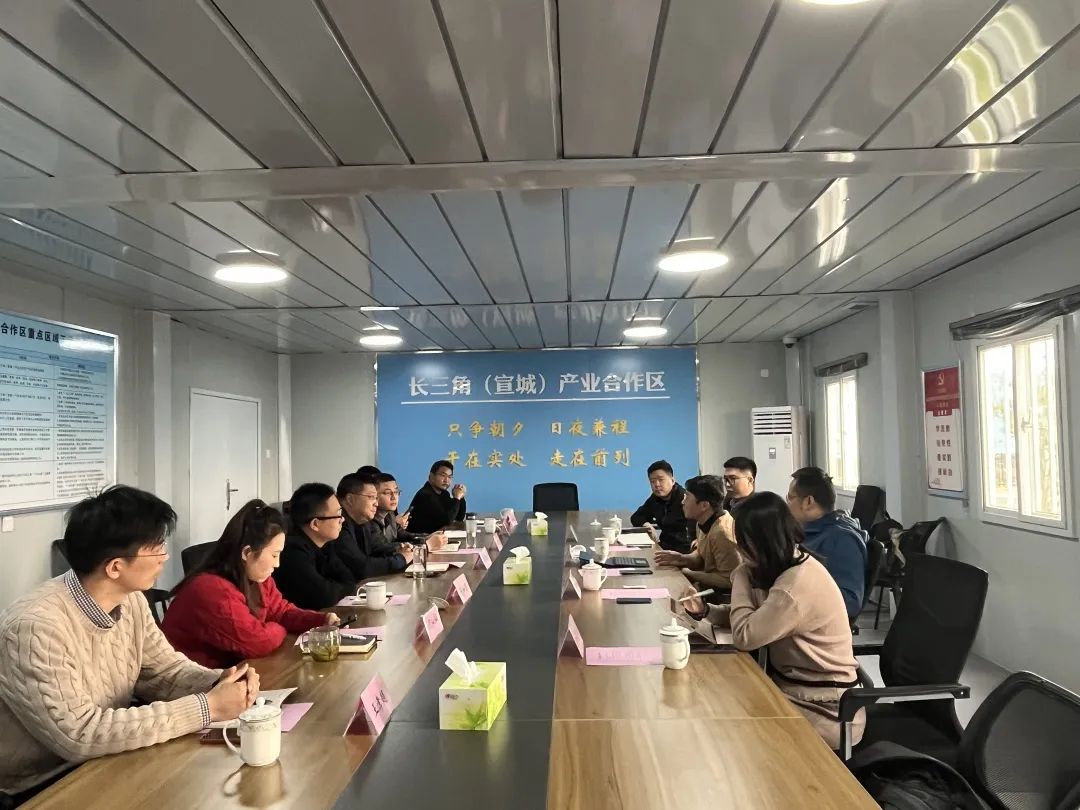 王昌盛对赵贞元一行的到来表示热烈欢迎,并介绍了长三角(宣城)产业合作区及广德片区的区位优势、生态环境和营商环境等。就企业投资意向和诉求等进行了探讨交流。