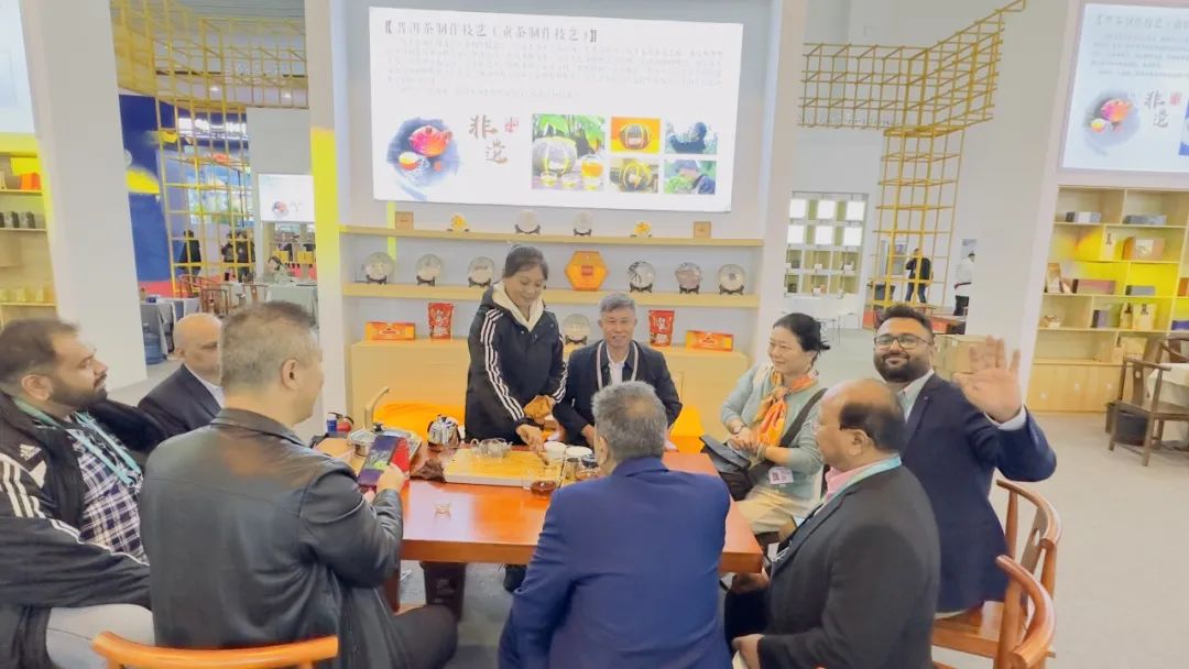 普洱茶(贡茶)制作技艺是展区“亮点”,吸引了大量海内外游客驻足咨询、品茶,部分游客更是直接入席,与传承人李兴昌探讨起普洱茶文化;极具民族特色的佤族织锦成为展区一道令人过目难忘的靓丽色彩,佤族织锦披肩、围巾、茶席,以及佤族元素耳环、项链等非遗产品也受到观展游客青睐。此次参展的展品涵盖非遗产品、非遗文创产品等多个品类,这些产品将传统非遗与现代时尚设计相结合,为游客多角度呈现出普洱丰富的非遗保护成果和“传统技艺+现代创意”的文化产业发展成效。