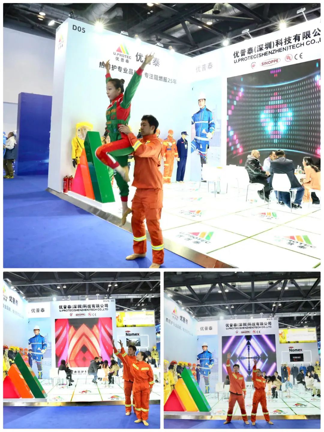 展会期间,我们展区现场举行了丰富多彩的活动:扭蛋机抽奖、舞蹈表演等,在现场引起广泛关注。舞蹈表演分三个主题进行表演,分别是《守护之盾》、《科技之韵》和《绿色“U”我》,生动表达了优普泰防护服装的舒适、安全、呵护理念以及其安全性、耐磨性、舒适性和时尚性等特点、公司始终坚持创新驱动,以科技为引领的发展道路以及如何秉持可持续发展理念,致力于创造一个更美好的防护未来等多层意义。
