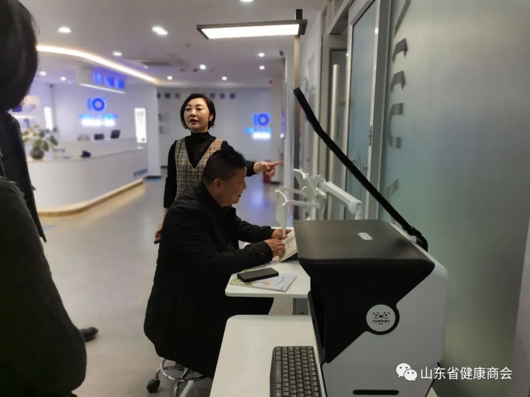 商会副会长单位、爱可优视眼科负责人徐萌向丁磊会长一行介绍了爱可优视发展历程,该单位十余年专注眼健康,在行业内取得了一定的成绩,从视力矫正、恢复为儿童眼健康作出了自身的贡献。
