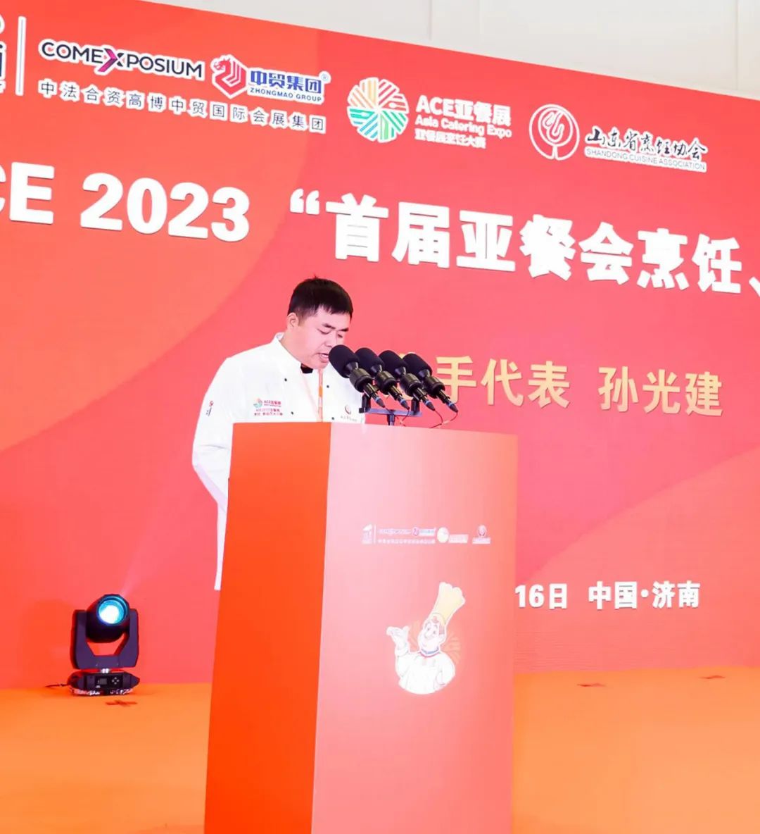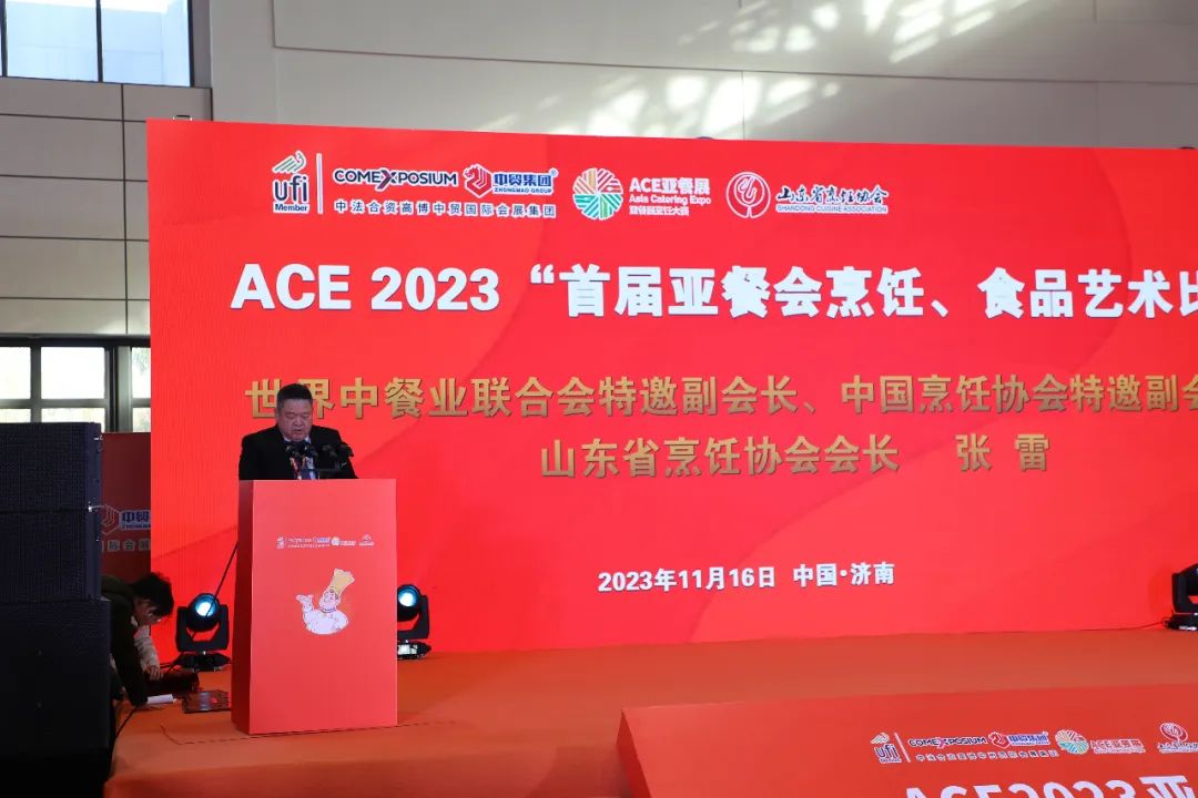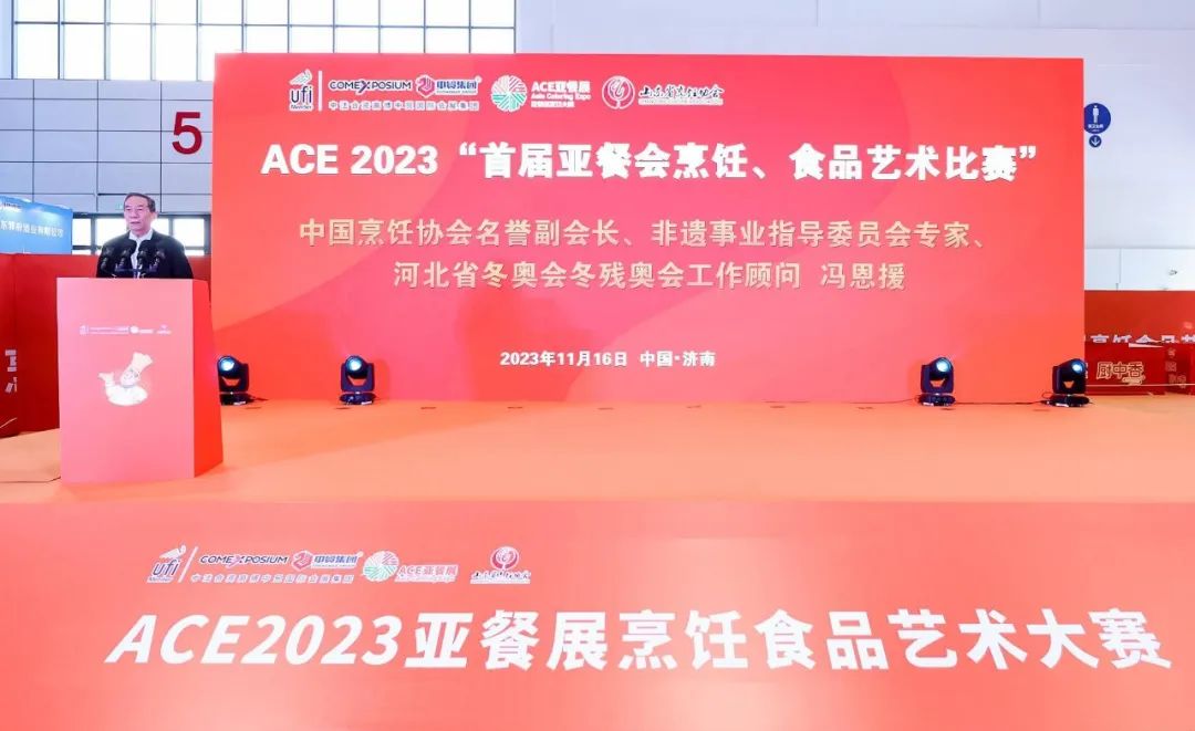 11月16日“ACE 2023亚洲餐饮展览会”暨“首届亚餐会烹饪、食品艺术比赛”在济南市山东国际会展中心盛大开幕,为推进本次大赛高质量发展,济南市引进了ACE2023亚洲餐饮展览会,这是这一国际性大赛首次落户我国,更有幸在济南举办。为促进餐饮产业的快速发展,由山东省烹饪协会与高博中贸国际会展(山东)有限公司主办,山东烹饪协会名厨专业委员会、山东十六地市烹饪协会、《中国鲁菜》杂志、山东鲁烹技术咨询服务有限公司、山东馨羚雅文化艺术传媒有限责任公司联合协办。为更好地承办本次大赛,多方共同努力推广鲁菜饮食文化在亚洲的影响力,充分发挥展会+烹饪比赛的优势,让“ACE 亚洲餐饮展览会”更精彩,餐饮食材信息交流、集成多方资源更丰富、带动餐饮产业更长远、更广泛的发展。