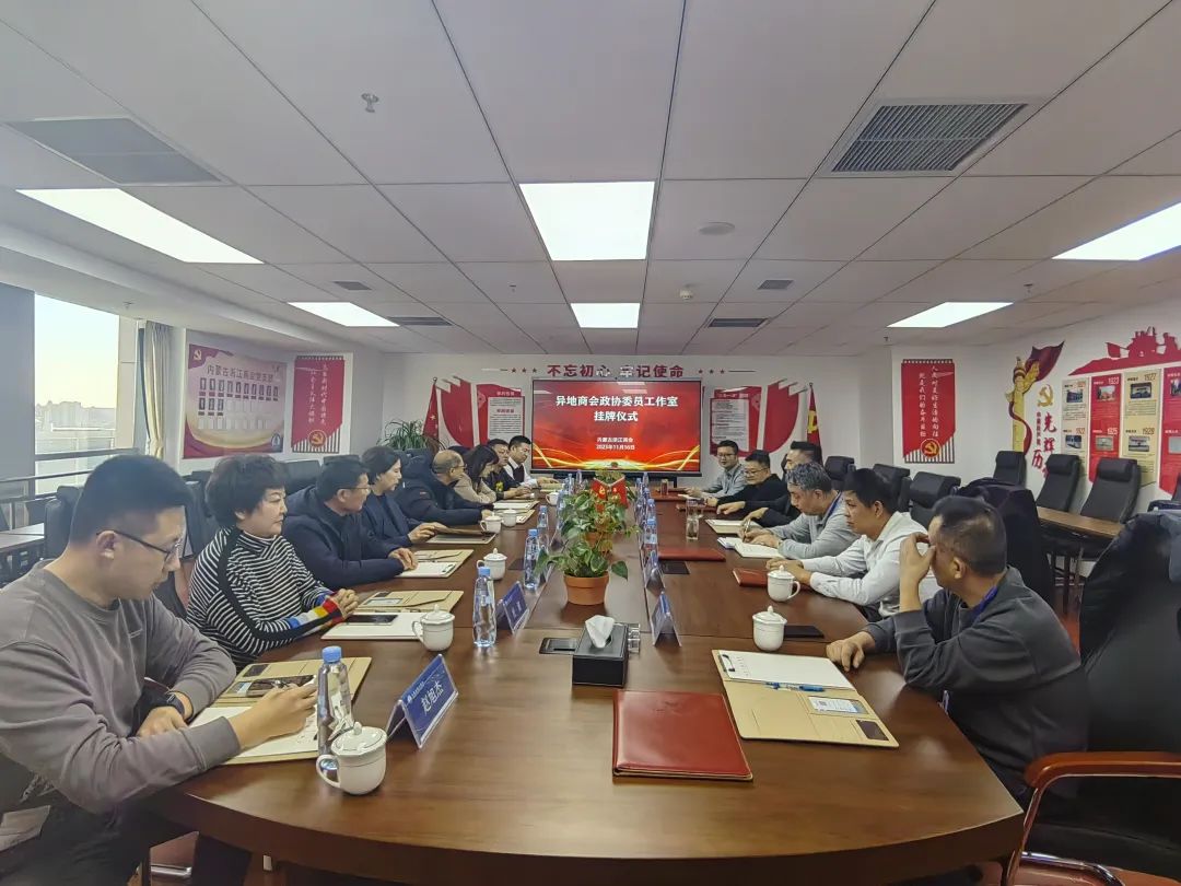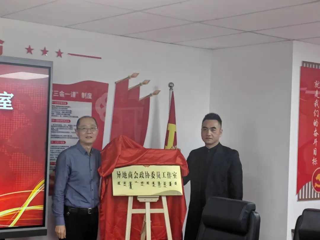 市政协经济委员会履职党支部书记、主任李冬,市政协经济委员会履职党支部副书记、副主任塔娜和市政协相关部门负责人、内蒙古浙江商会领导班子成员、会员企业代表出席“异地政协委员工作室”揭牌仪式。市政协经济委员会履职党支部书记、主任李冬与内蒙古浙江商会会长施达苗共同为“异地政协委员工作室”揭牌。
