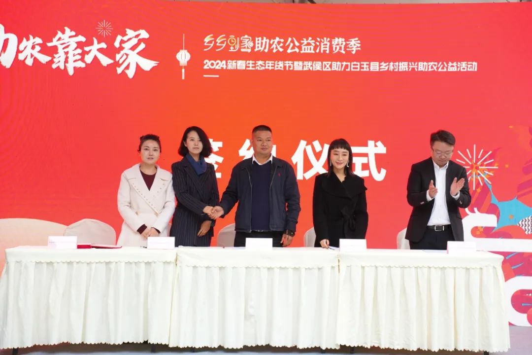 2023年11月17日,万企兴万村”之“乡乡到家”助农公益消费季——2024新春生态年货节在成都市武侯区玉林东路社区党群服务中心正式启动。同时,由武侯区委、区政府、白玉县委、县政府主办的武侯区助力白玉县乡村振兴助农公益活动也在此同步举行。商会会长王开昕,监事长罗义军,副会长王雨翔,熊杰,扎西泽丹,达瓦德央出席活动。