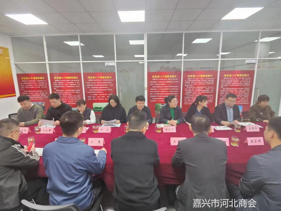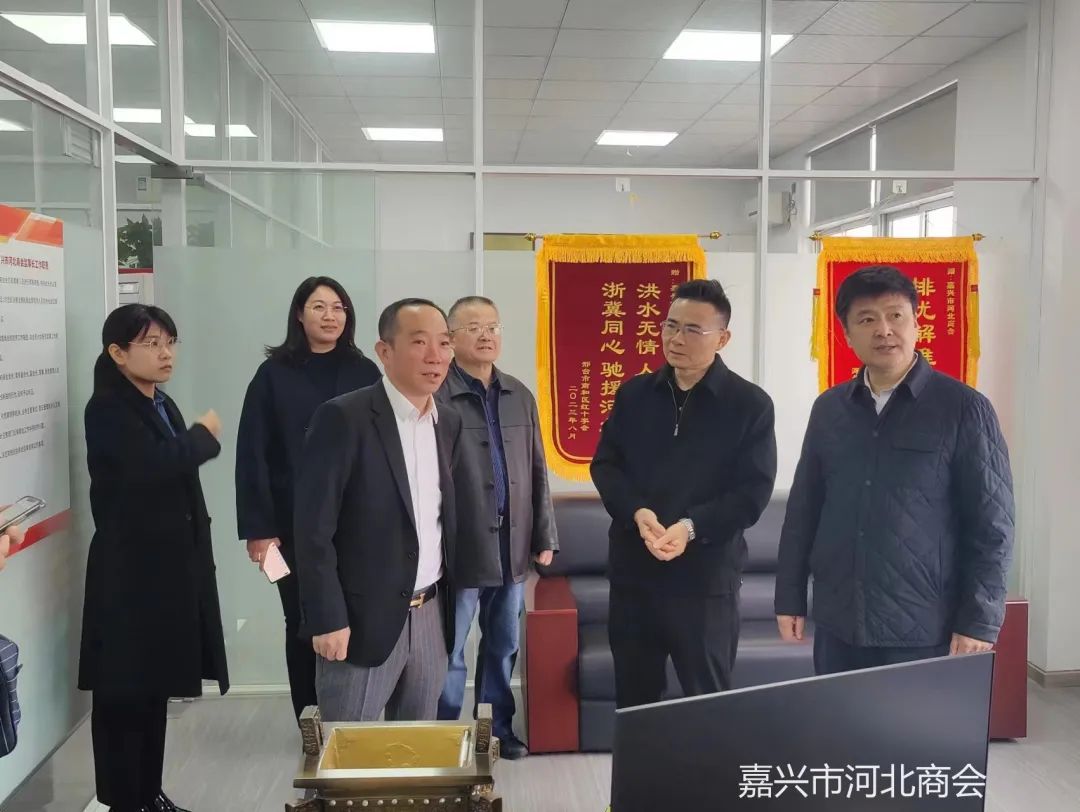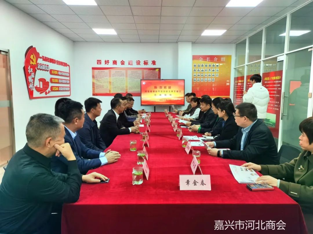 11月16日上午,河北省邢台市政协副主席、市工商联主席王建江一行来我会走访考察。嘉兴市工商联党委副书记、副主席张翼专程陪同,我会会长王振刚、党支部书记张振等在商会迎接并热情接待。