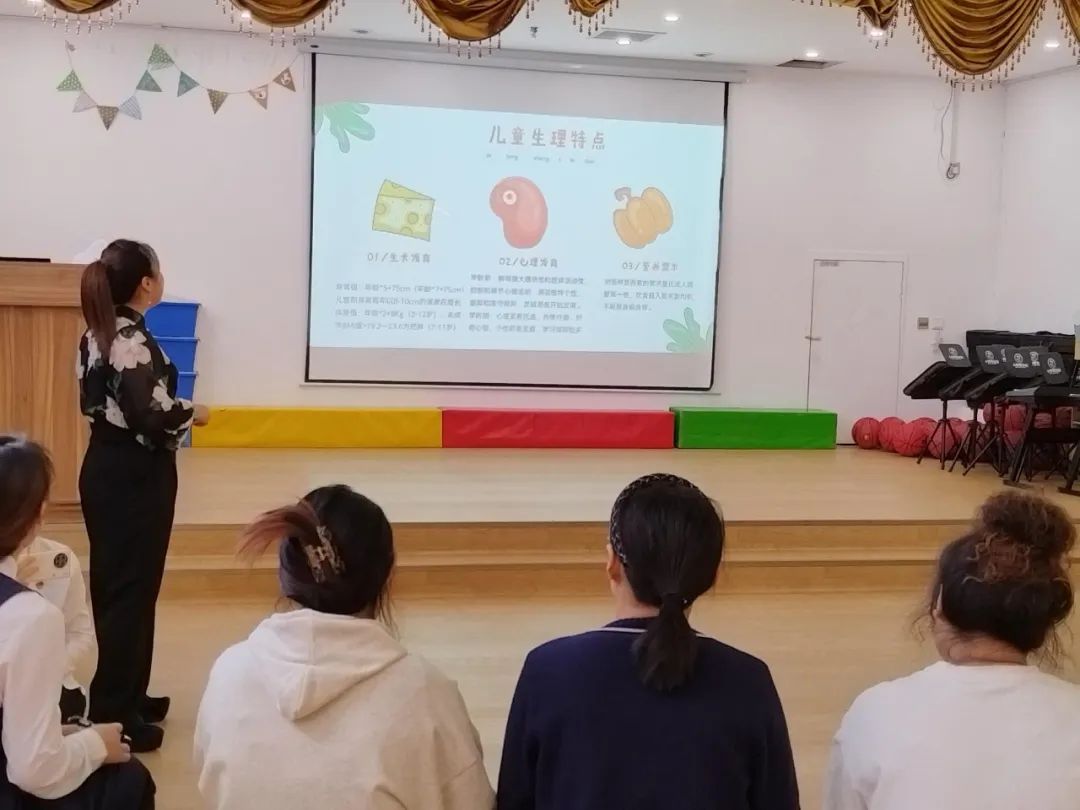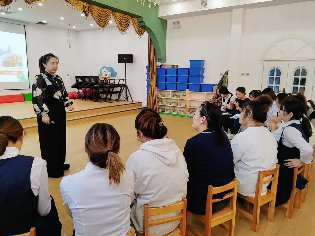 在培训中,专业营养师向教师们详细介绍了幼儿膳食营养指南,包括合理搭配食物、适量摄入蛋白质、多吃蔬菜和水果、控制糖分和盐分摄入等方面。同时,营养师还针对不同年龄段幼儿的营养需求和饮食特点,为教师们提供了具体的膳食搭配建议和食谱。