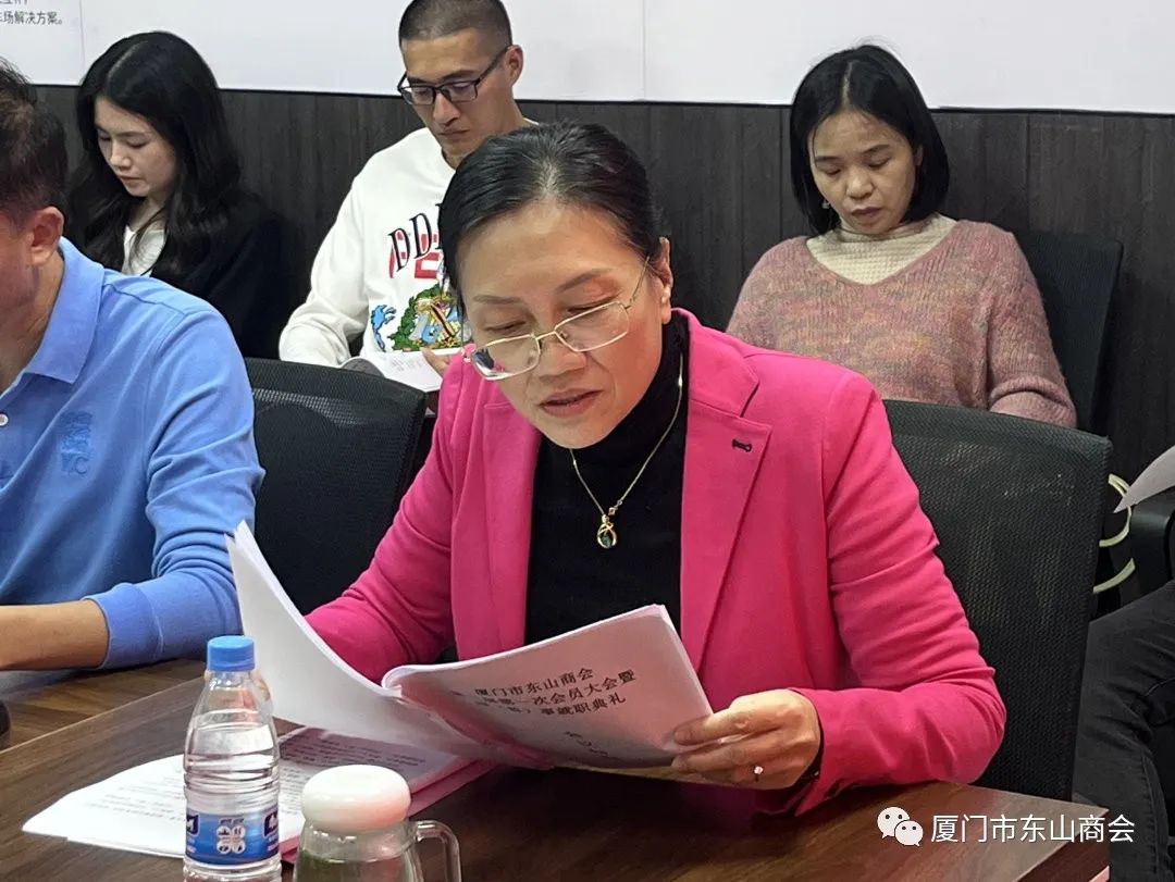 由厦门市东山商会秘书处吕丽泳组织第三届筹备组成员向大会宣读其他换届大会资料,并举手表决全票通过。