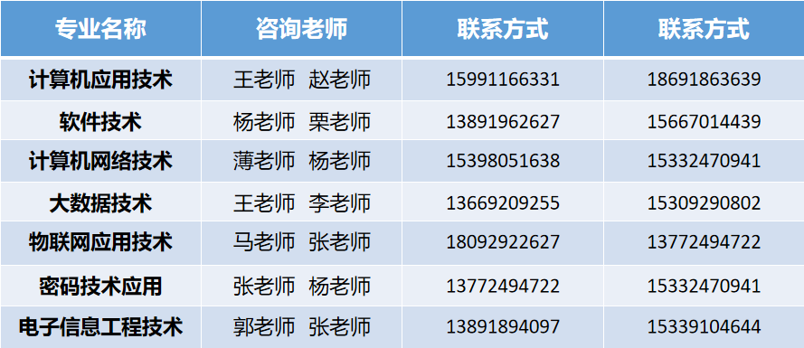 电子信息工程学院各专业咨询联系方式