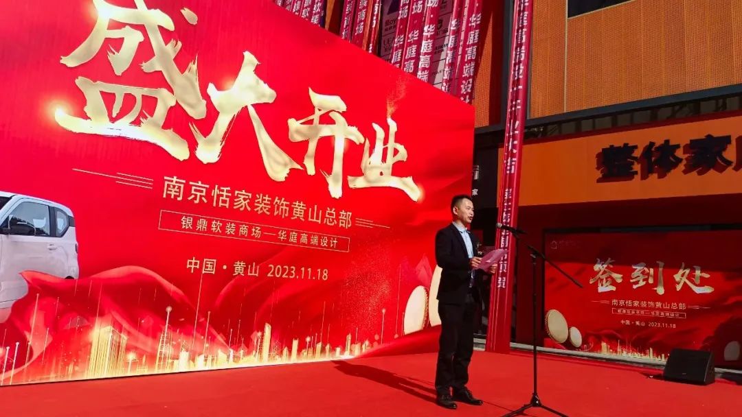 日,黄山市装饰建材商会装饰委员会常务副会长单位、南京恬家装饰工程有限公司所属的华庭高端设计开业盛典在中盛建材市场隆重举行,商会会长叶长有,监事长程锋,秘书长李昌国,常务副会长李建