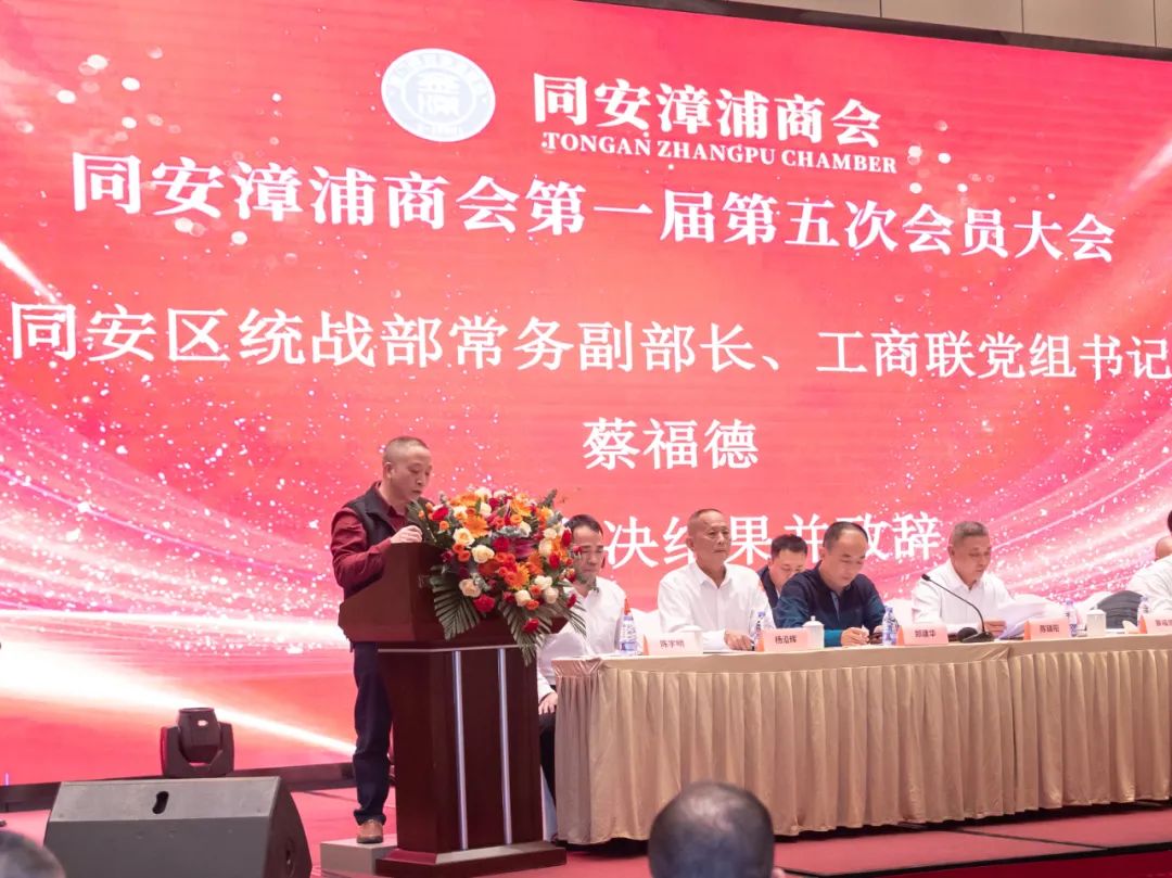 同安区统战部副部长、工商联党组书记蔡福德宣读表决结果并致辞
