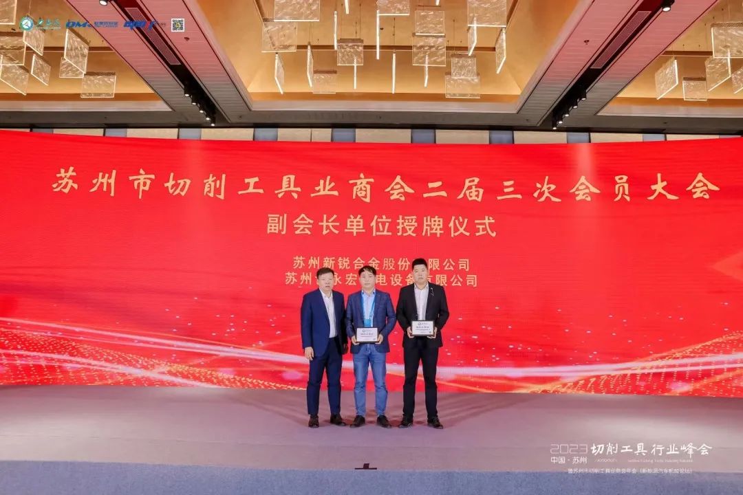 2023年11月18日下午,苏州市切削工具业商会二届三次会员大会在苏州国际会议酒店召开。苏州市工商联副主席吕瑾,行业商会处副处长吴颖奇出席。按照商会章程,大会规范有序召开。商会领导依次作了2023年理事会工作报告、监事会工作报告、党支部工作报告;审议通过新增副会长、理事和会员名单,并颁发了会员牌。