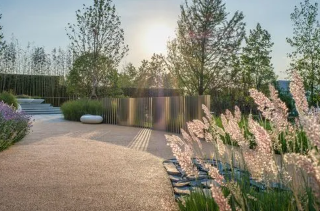 植物色彩,同样常有2 种搭配方式:①跟环境色是同色系,与环境形成一定的体量感;②采用环境色的对比色的大面积斑块,并且通过一定规律重复交替,形成色彩丰富,有节奏感和韵律感的美学体验。