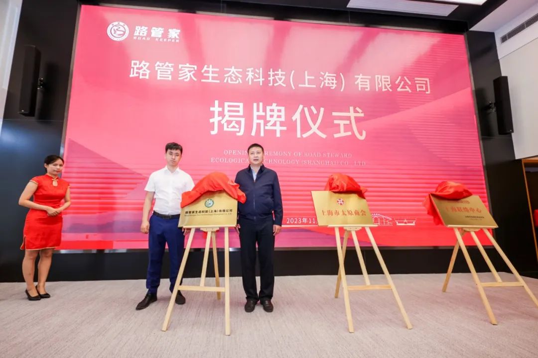 ▲山西省小企业发展促进局党组成员、副局长冯志山、喜跃发国际环保新材料股份有限公司总经理刘晓斌为路管家生态科技(上海)有限公司揭牌