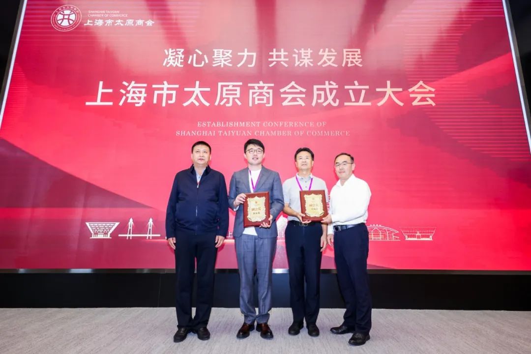 ▲山西省工商联主席景普秋、太原市副市长李永强、太原市委统战部副部长、市工商联党组书记窦力奋、上海市合作交流办推进指导处副处长李婷为上海市太原商会揭牌
