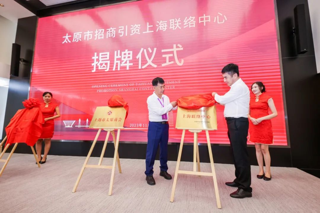 ▲太原市副秘书长师中军、上海市太原商会会长刘跃为太原市招商引资上海联络中心揭牌