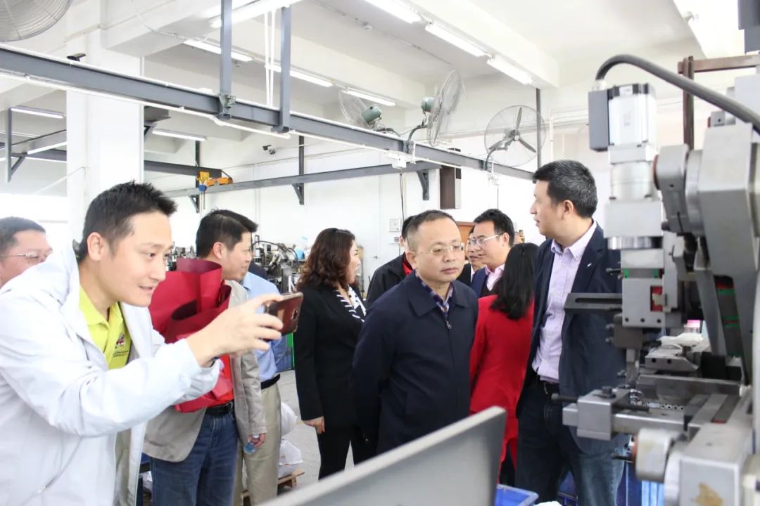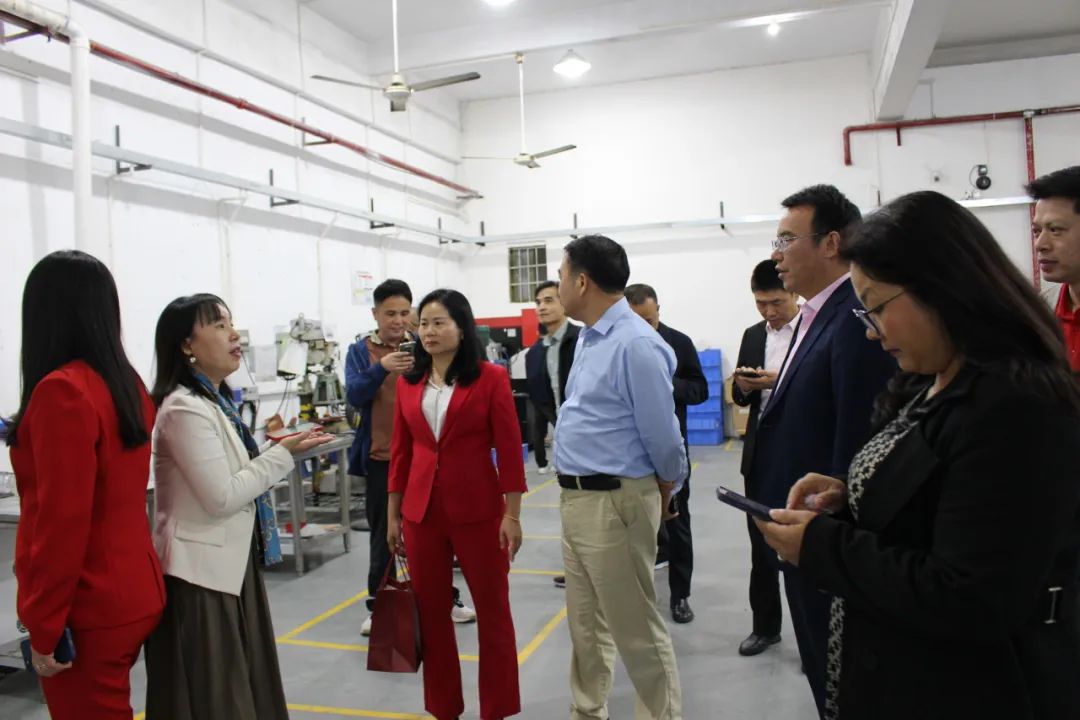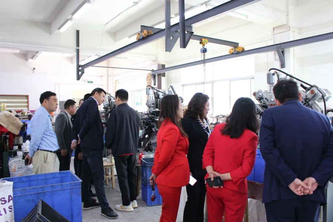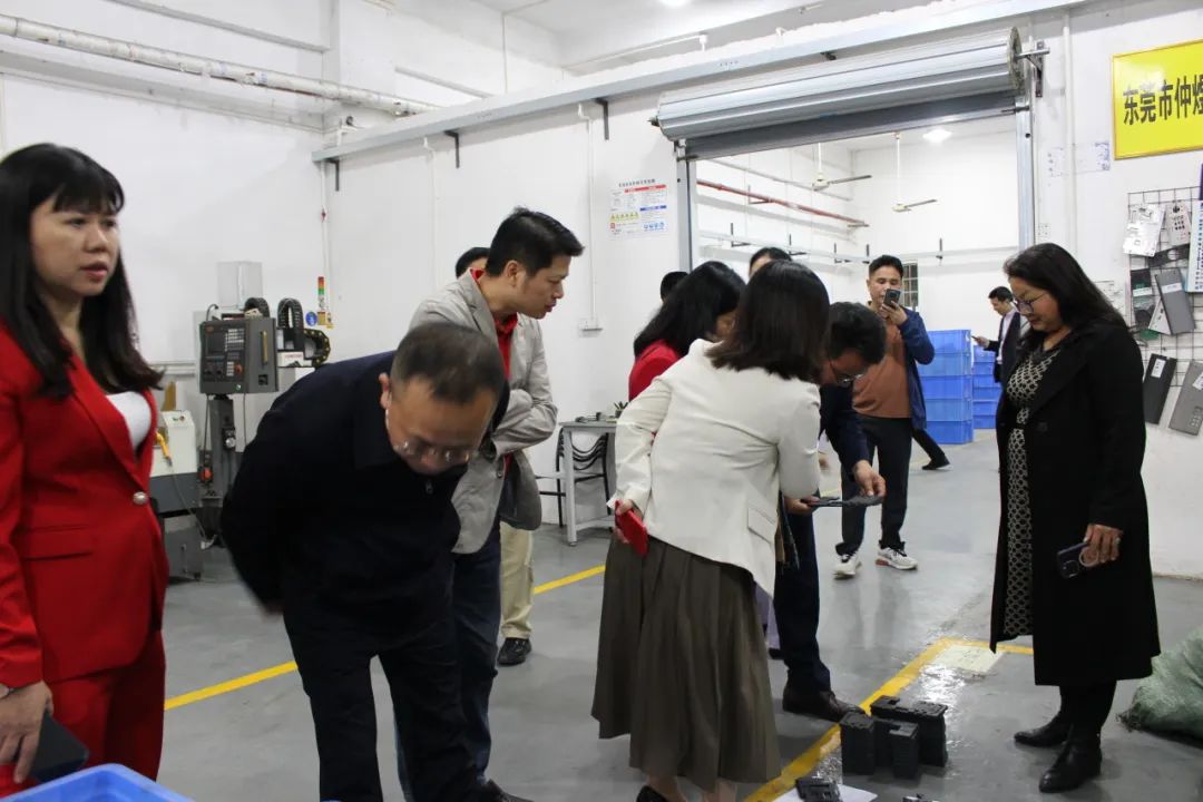 走访团第三站来到了副会长钟芳企业——东莞市仲煜五金塑胶有限公司。钟会长带领走访团参观工厂环境,依次向大家讲解各项机器的用途以及生产的产品。随后众人移步至会议厅进行座谈。