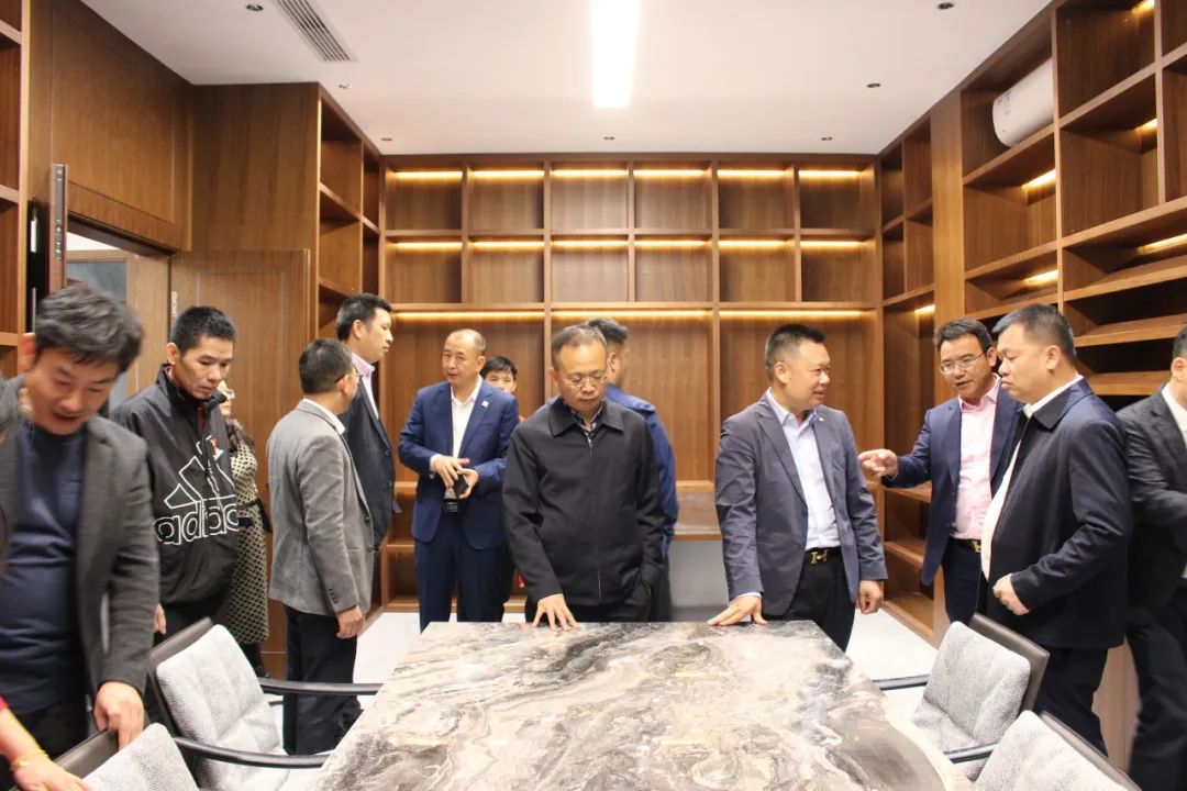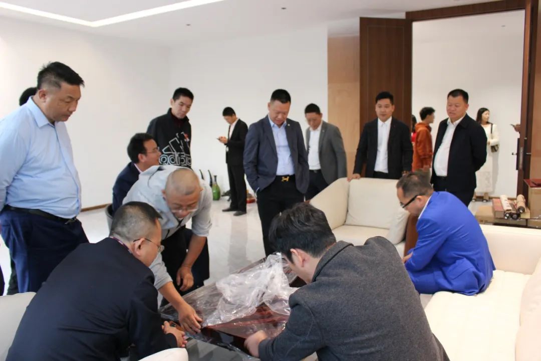 走访团第四站来到了常委委员、常务副会长王立新企业——东莞市中艺嘉美家具制造有限公司。王会长带领走访团参观了办公环境、产品展厅,工作人员详细地为走访团介绍了产品的材质、做工等。