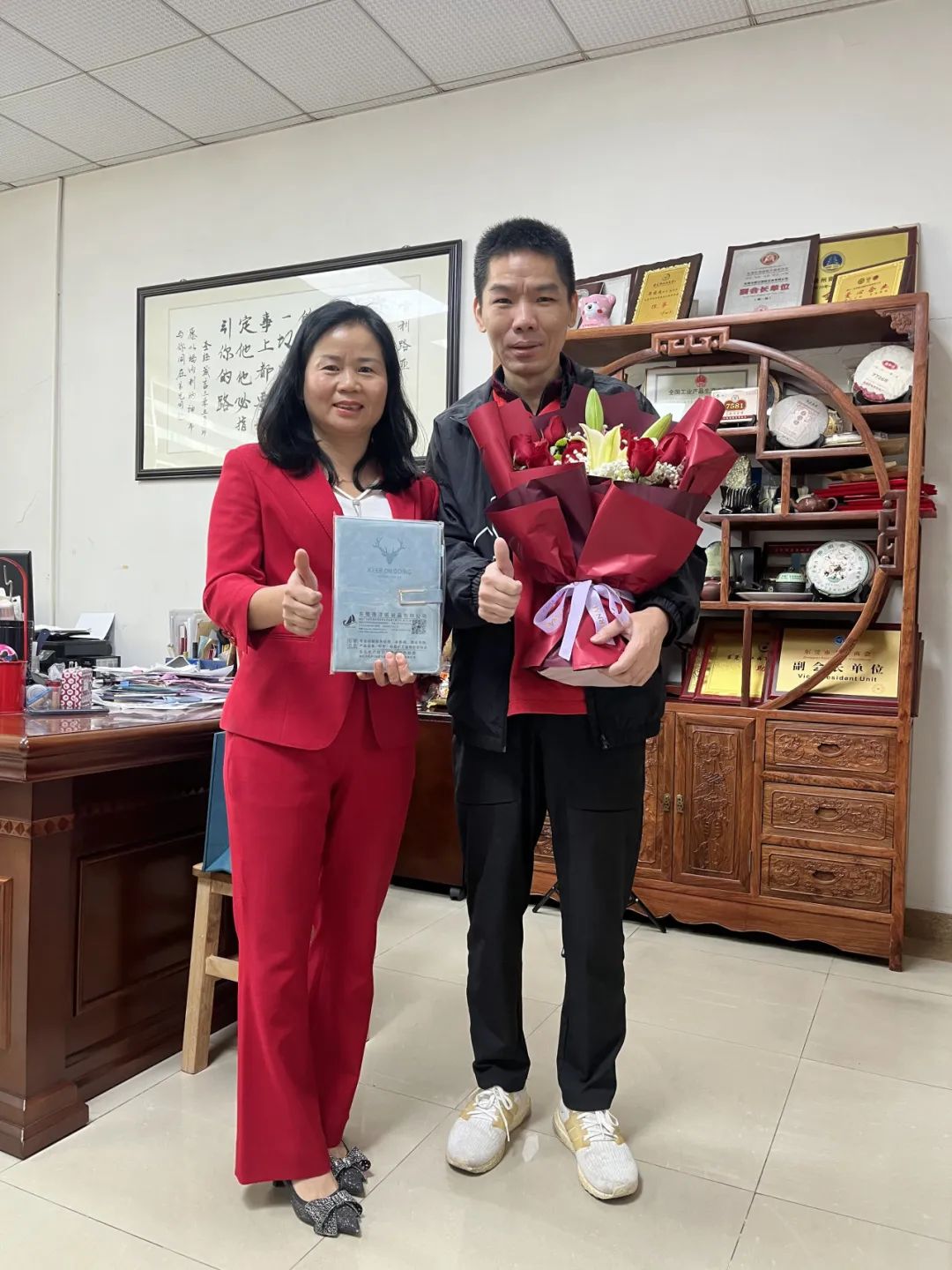 蒙会长向走访团进行了详细地自我介绍、企业的基本情况,并向大家分享了其创业经历以及经营企业的心得体会。随后由其妻子进行补充分享,表示夫妻二人创业至今已有二十余年,一直坚守诚信,并以帮助更多人作为公司的使命。在经营企业时,用心对待每一位员工,将员工当成自己的家人,在助推企业的发展过程中,也助力员工的成长。同时也表示在经营企业这个大家庭过程中,也不能忽略小家。重视子女教育、维护兄弟姐妹感情都是强有力的后盾。