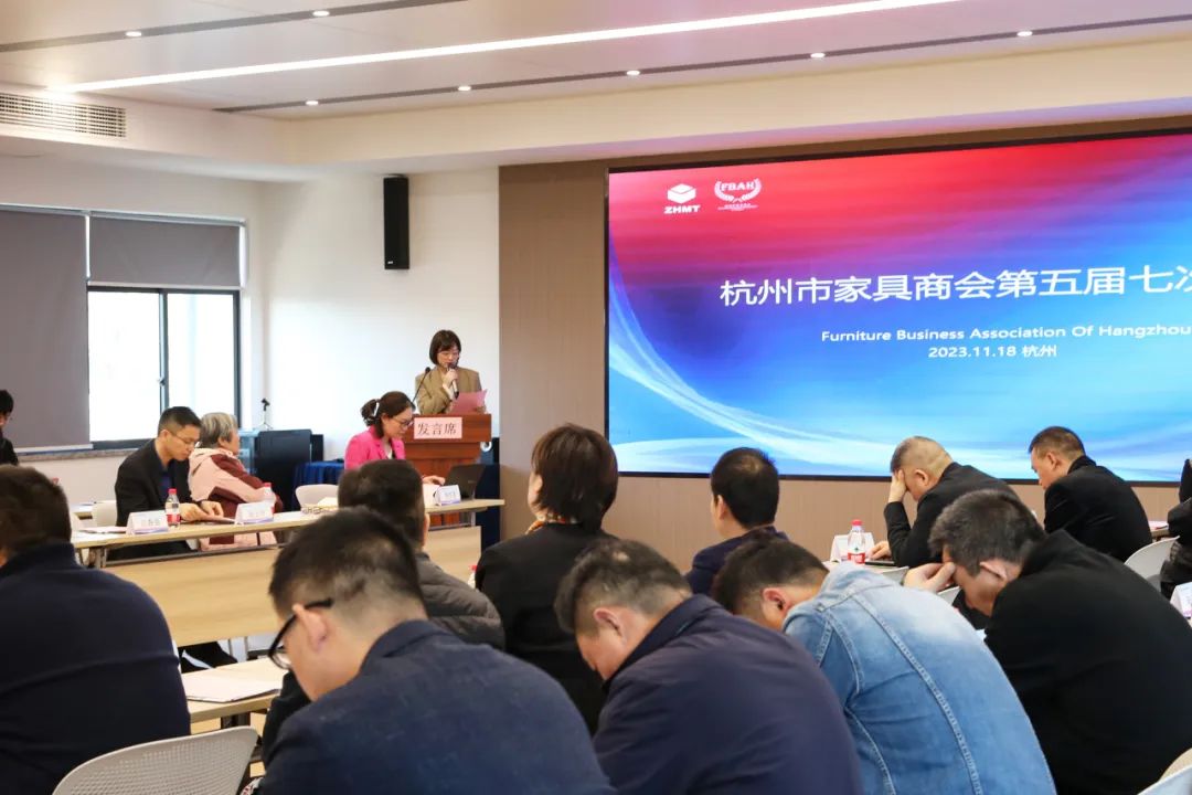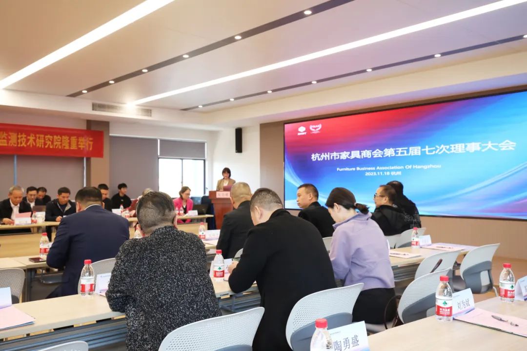 11月18日,杭州市家具商会第五届七次理事大会在中杭监测技术研究院隆重召开。出席会议的特邀领导和嘉宾有,杭州钢铁集团有限公司总工程师胡文豪、中杭监测董事长吕森强、浙江省家具行业协会名誉理事长蒋鸿源、商会高级顾问家具行业资深技术专家教授级高工梁米加、浙江农林大学副教授马掌法、浙江理工大学创意导师高级政工师吴少敏、家具行业技术专家顾问杨秋环、亚马逊大客户招商运营高级经理Jojo Chang。出席本次会议的还有杭州市家具商会会长、名誉会长、副会长、理事等90余人。