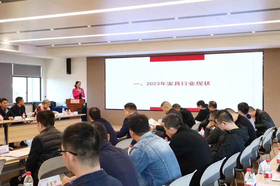 本次会议,特别邀请专家做专题分享。亚马逊大客户招商运营高级经理Jojo Chang分享《家具品类趋势及2024政策详解》、中杭监测研究院市场部吴君分享《家具行业的绿色与健康》、浙江泽大律师事务所吴越琪律师分享《大数据镜像下的企业合规与法律服务》。与会企业负责人共同分析研判市场趋势,深入开展行业交流。