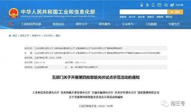 一,11月13日,工业和信息化部办公厅、住房和城乡建设部办公厅、交通运输部办公厅、农业农村部办公厅、国家能源局综合司五部门联合发布关于开展第四批智能光伏试点示范活动的通知。