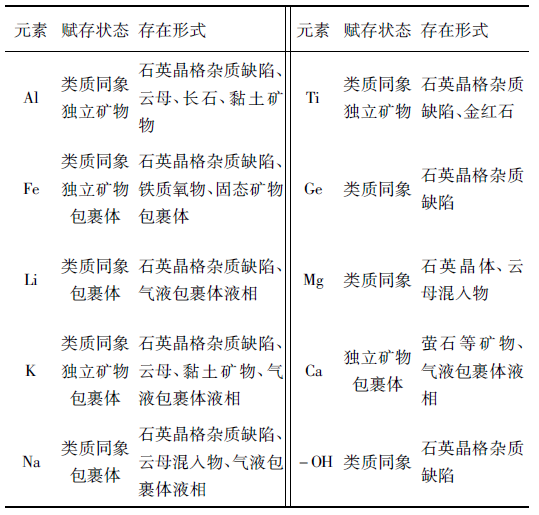 石英晶粒间隙和晶界间处存在矿物杂质的脉石英也可能被加工为高纯石英,如图1(b)青海某脉石英晶粒粗大,质地纯净,伴生少量白云母,且多分布于石英晶粒间隙和晶界间,容易与石英单体解离,经提纯加工也可获得SiO2含量达99.99%,Al含量小于10ppm的高纯石英。